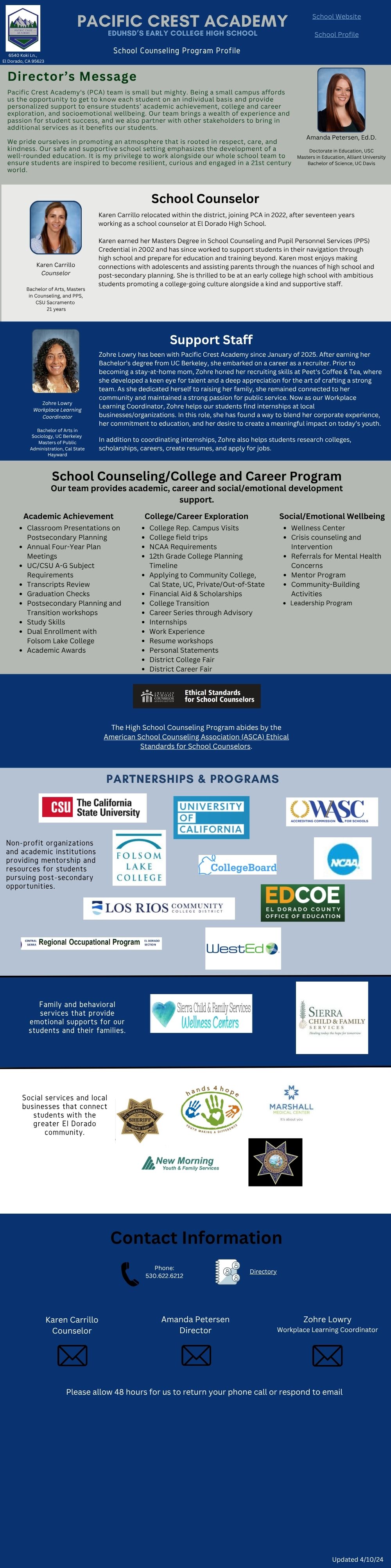 PCA offers a robust academic program to prepare students for success in high school and postsecondary. We have an incredible team to support our students in determining and reaching their goals!